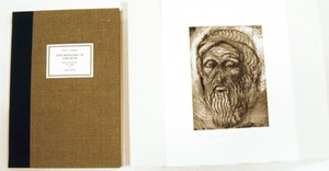(DINE, JIM). Dine, Jim & Neil Curry. London: Enitharmon Editions Ltd., 1993. First Edition 1/75 Deluxe. 4to. Cloth in Slipcase. Illustrated Book. As New.. 64pp, with an individual signed lithograph, a lithographic frontispiece and four photogravures bound into the book. Beautifully illustrated by Jim Dine, this is the deluxe edition of author Neil Curry's colloquial version of the closing books of Homer's Odyssey in which he has "scrubbed the story free from all its side-tracks and digressions so as to leave clear one thread of Odysseus's final journey: from the shores of Ithaca to the marriage-bed where he is finally reunited with Penelope". It is hand-printed in 14 point Monotype Baskerville on Canaletto 160gsm (fine) and bound and slipcased by The Fine Bindery. Jim Dine's signed original 12 ½ x 9 ¾" etching of "The Head of Homer" (contained loose in a wallet in the slipcase) was printed on 300gsm Hahnemuhle at the Spring Street Workshop in New York. The lithographic frontispiece and four photogravures bound into the book all reproduce drawings made by the artist in 1987-8 from Greek and Roman statuary at the Glyptotek in Munich, and were printed in London by Pauper's Press and Hope Sufferance Press. A brand new, pristine example of the deluxe edition limited to seventy-five copies SIGNED by the author, as issued. 1-870612-09-4 Inventory Number: 013858