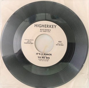 (BROTHERHOOD OF THE SOURCE, THE). Ya Ho Wa. Los Angeles, CA: HigherKey Records, 1974. First Printing. 7 x 7". Single in plain paper sleeve. 7" Vinyl Single. Near Fine Single in Near Fine Sleeve. One 7" black vinyl 45 RPM phonograph record in a plain paper outer sleeve. This is the 1974 two-sided single by Los Angeles' Brotherhood of The Source's musical group, Ya Ho Wa. The A-side is "It's A Knack" 2:45 backed with "Angel Baby" 1:30 as the B-side. Issued in a small press run as for promotional use only, it was never made commercially for sale. A handsome example of the 1974 first HigherKey Records pressing of this psych rarity acquired directly from a member of the Source Family showing some light surface abrasions to the vinyl along with some age-toning to its unprinted paper outer sleeve. Inventory Number: E000YHWIAK