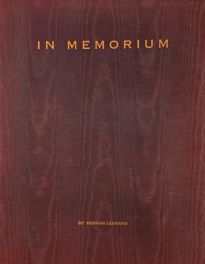 (LEONARD, HERMAN). Leonard, Herman & Richard Williams. NP. ND (1992).: Self-Published. First Edition #270/300. Folio. Loose Plates in a Solander Box. Photography Monograph. Fine/No Jacket - As Issued. One 14 x 22" sheet folded neatly in half vertically to make 4pp + twelve 14 x 11" heavy cardstock sheets printed recto in duotone and verso in offset - each housed in a printed vellum sleeve, 12 duotone illustrations. "In Memorium" (sic) is the luxe 1992 self-published portfolio of twelve iconic images of legendary deceased Jazz musicians by the noted late American photographer Herman Leonard. It contains twelve individual suitable for framing duotone offset plates featuring Louis "Satchmo" Armstrong, Art Blakey, Miles Davis, Edward "Duke" Ellington, Erroll Garner, Stan Getz, Dexter Gordon, Billie Holiday, Thelonious Monk, Charlie "Bird" Parker, Sarah Vaughan, Lester "Prez" Young, and Sarah "Sassy" Vaughan. Each is comes in its own captioned vellum protective sleeve and accompanied by a four page colophon/booklet with biographical texts by Richard Williams. The contents are housed in a sumptuous gilt-stamped deep burgundy moiré silk-over-boards solander box. According to the photographer in a letter dated in 2010 "This was a boxed set we produced in 1992, as you describe. You have a rare item. Not more than eighteen were sold". It seems that the portfolios were completed as they were purchased from Leonard's studio, and the few copies that have turned up in the marketplace in recent years have virtually all been unsigned and unnumbered. An internally pristine example from the exceeding uncommon SIGNED AND NUMBERED (#270/300) edition in a like portfolio. Inventory Number: 026048