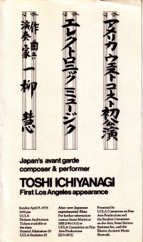 TOSHI ICHIYANAGI: HANDBILL FOR HIS FIRST LOS ANGELES CONCERT AT DICKSON AUDITORIUM, U.C.L.A., APRIL 19, 1978
