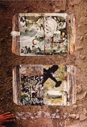 (BEARD, PETER) (FLEETWOOD MAC). Beard, Peter. Burbank, CA: Warner Bros. Records, 1979. First Edition. Elephant Folio. Color Photolithographic Print. Promotional Print. Fine.. One 34 x 24" heavy paper sheet printed using four color continuous-tone photolithography recto only, 1 illustration. This is the striking print art-directed by Larry Vigon in collaboration with Peter Beard that was produced by Warner Bros. Records as a limited edition promotional item for Fleetwood Mac's "Tusk". Beard, along with photographers Jayme Odgers and Norman Seeff contributed the album package's photography, and was selected to contribute this image for what became a luxe in-house giveaway for the label's promotions staff. While visiting Los Angeles, Beard photographed his collaged diaries - incorporating his images of band members Mick Fleetwood, Stevie Nicks, Lindsey Buckingham, Christine McVie and John McVie - in the dirt beside some train tracks, with his hand visible in the bottom left corner in the image. The resulting transparency was sent to Chicago's noted Black Box printers, who produced this spectacular limited edition continuous-tone four color photolithograph. A brand new, most handsome flat example of this exceedingly uncommon object issued hors commerce - never commercially for sale - perfect for the Peter Beard and/or Fleetwood Mac completeist. PLEASE NOTE: This "Sample" copy is NOT SIGNED by Peter Beard! Inventory Number: 026482
