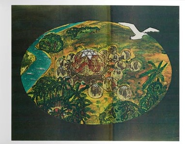 (BROTHERHOOD OF THE SOURCE, THE). Aquarian, Isis. Brooklyn, NY: Sacred Bones Books, 2022. First Edition. 9 x 11 ½". Illustrated Wrappers. New.. 20pp, 20 color illustrations. Issued as an exceedingly limited edition by Sacred Bones Books in conjunction with their publication of "Family: The Source Family Scrapbook," "Dome Book" is a 9 x 11 ½" reproduction made from high resolution scans of the original Dome Book manuscript in the Source Family's archive housed as part of the University of California, Santa Barbara Library's American Religions Collection. This beautifully illustrated prospectus embodied Father Yod's grandiose-though-ultimately-unrealized vision for The Family's post-California communal life. It features detailed plans for a rustic, domed utopia they dreamed of building in Hawaii. The Family archivist Isis Aquarian said of the project "This was our dream: to live together, far away from the city and self-sufficient, able to offer others a healing retreat with a spa, a restaurant, and a nightclub." A brand new, most handsome example of this never before published document that quickly sold out and will not be reproduced again additionally.signed by Isis Aquarian in black ink on the rear cover. Inventory Number: E000SFDB