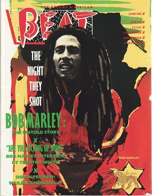 (REGGAE AND AFRICAN BEAT, THE). Smith, C.C. & Roger Steffens, Editors. Los Angeles: Bongo Productions, 1985. First Edition. 4to. Stapled Pictorial Wrappers. Music Periodical. Fine.. 50pp, profusely illustrated in b&w and color. Cover image of Bob Marley. C.C. Smith's Los Angeles-based "Reggae Beat and African Beat" is the magazine that grew out of deejays Smith, Hank Holmes and Roger Steffens' early eighties weekly KCRW show "The Reggae Beat". This June 1985 installment is their third annual "collectors edition" issue devoted to Bob Marley and The Wailers that includes contributions on or by Steffens, Timothy White, Jeff Walker, and "Jamfest 85". Also featured are regular columns "Reggae Movement", "African Music", and more along with loads of informative record reviews, playlists, and advertisements. A most handsome example. Inventory Number: 019744