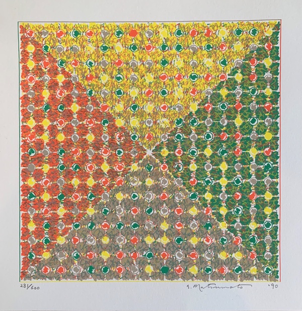 (MATSUMOTO, AKIRA). Matsumoto, Akira, Tsunehisa Hiruma, Masayoshi Homma & Makoto Nakamura. Tokyo: Gyarari Natsuhiko, 1991. First Edition #281/600 Deluxe. Oblong 4to. Debossed Cloth in Slipcase. Catalogue Raisonné. Fine/No Jacket - As Issued. 312pp, 358 illustrations in color and b&w. Text in Japanese and English. With a biography, exhibition history and bibliography. This is the beautifully printed 1991 monograph on the noted Japanese Pop-turned-Abstract artist Akira Matsumoto. It contains essays by Tsunehisa Hiruma, Masayoshi Homma, and Makoto Nakamura along with a catalogue raisonné of works executed between 1960 and 1990. A most handsome example of the uncommon deluxe edition limited to six hundred copies NUMBERED (281/600) and additionally SIGNED in Japanese by the artist in black ink on the title page housed in the publisher's gilt-debossed slipcase with the ORIGINAL COLOR SILKSCREEN PRINT "Arrangement (Inversion S 15)" SIGNED AND NUMBERED (281/600) in pencil laid in, as issued. Inventory Number: 022524