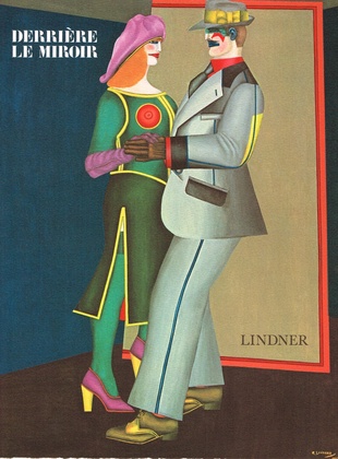 (LINDNER, RICHARD) (DERRIERE LE MIROIR). Lord, James. Paris: Maeght Editeur, 1977. First Edition 1/150 Deluxe. Folio. Wrappers in Slipcase. Artist Monograph. Fine. 24pp, profusely illustrated in color and b&w. Text in French, with an English summary. This is a monographic edition of Maeght's legendary periodical "Derriere Le Miroir" (featuring the great artists and writers of the 20th Century) devoted solely to Richard Lindner's 1977 exhibition of paintings and watercolors. An internally bright, pristine example of the deluxe slipcased edition printed on Velin de Rives limited to one hundred and fifty copies NUMBERED (39/150) AND BOLDLY SIGNED "R Lindner" in pencil on the rear colophon housed in the publisher's purple paper-over-boards chemise and slipcase with printed pastedown. The magazine itself is in spectacular condition, the chemise bears mild sunning along the spine, while the slipcase shows light wear and similar mild sunning. Inventory Number: 024984