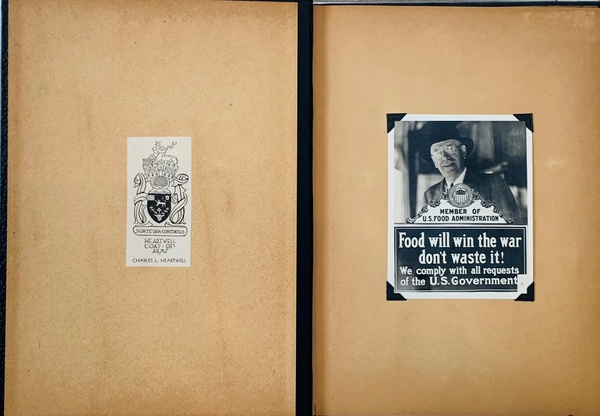 Author Not Stated. NP. ND.: NP. Edition Not Stated - Presumed First. 4to. Scrap Book Binder. Poster Monograph. Fine/No Jacket - As Issued. np (74pp) + np (24pp), 102 black and white mounted photographs + 36 b&w illustrations. This is a hand-assembled scrapbook album that has been filled with black and white photographs loosely inserted into corner mounts reproducing one hundred and two posters issued in conjunction with the United States' participation in the First World War. While not dated, its general appearance and the sulfurous nature of the pages give the impression that this dates to the first half of the twentieth Century. A most handsome example of this unique album bearing the vintage Ex Libris bookplate of Charles L. Heartwell who we suspect must be the compiler into which has been laid a Fine condition copy of "Recruiting Posters Issued by the U.S. Navy Since the Declaration of War" issued in 1918 by the Press of the U.S. Navy Recruiting Bureau that features images of works by the likes of J.C. Leyendecker, Frank Brangwyn, Charles Dana Gibson, Howard Chandler Christy, James Montgomery Flagg, and many more. Inventory Number: 026955