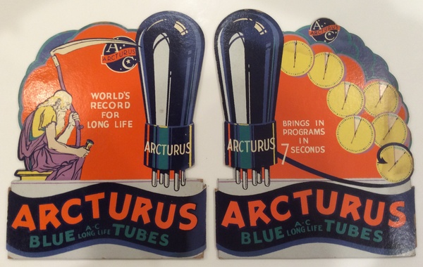 THE ARCTURUS RADIO TUBE CORPORATION: A STUNNING SET OF FIVE 1930s STANDUP ADVERTISING DISPLAYS