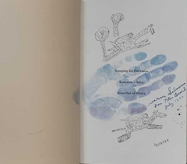 LONGING FOR DARKNESS: KAMANTE'S TALES FROM OUT OF AFRICA (WITH ORIGINAL PHOTOGRAPHS AND QUOTATIONS COLLECTED BY PETER BEARD) - A UNIQUE COPY ELABORATELY INSCRIBED AND SIGNED BY PETER BEARD