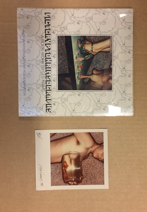 (KRIMS, LES). Krims, Les. Introduction by Hollis Frampton. Buffalo, NY: Humpy Press Inc., 1975. First Edition 1/125 Deluxe. 12mo. Pictorial Wrappers. Photography Monograph. Near Fine.. np (94pp), 40 color illustrations. Designed by Les Krims. In a protective clear acetate dustwrapper. "Fictcryptokrimsographs" is one of Les Krims' charming self-published photography books from the seventies. It reproduces in miniature forty vaguely erotic, always humorous Polaroid SX-70 prints along with an introductory essay by the esteemed Hollis Frampton. A bright, most handsome example of the deluxe edition this little gem (cited on page 244 of Alessandro Bertolotti's "Books of Nudes") limited to one hundred and twenty five copies bearing the Humpy Press Inc. blindstamp SIGNED AND DATED "Krims 76" in pencil on the front pastedown with a SIGNED AND NUMBERED (4/125) 4 ¼ x 3 ½" unique Polaroid color print of "Goldfish Bowl Press and Plug 1974" (reproduced as plate number 2) laid into a glassine envelope affixed to the inside front cover, as issued. Inventory Number: 021819